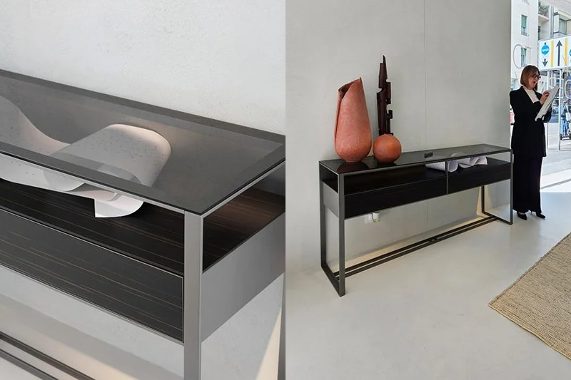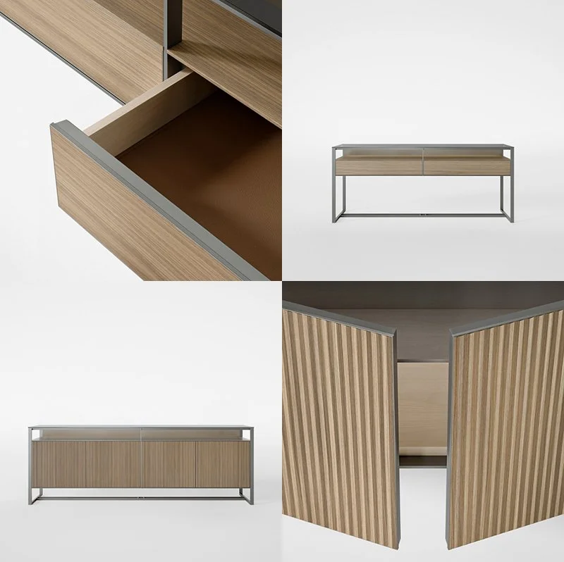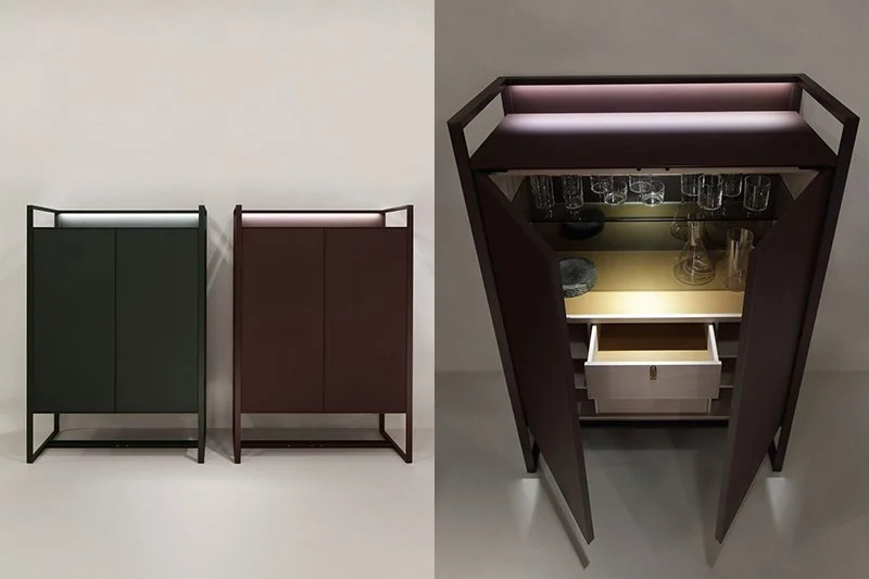 견고한 목구조로 짜여진 드로워는 신규 마감 미엘레(Miele)와 아레나(Arena) 레더로 마감하여 거실과 서재에 우아한 오브제 가구가 됩니다.