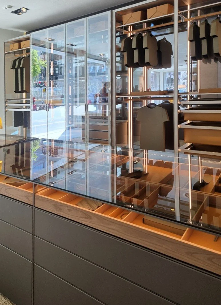 또한 유광 글래스를 비롯해 매트, 사하라 글라스 등 다양한 소재로 도어 마감이 가능해 공간 컨셉에 어울리는 다채로운 디자인을 시도할 수 있습니다.