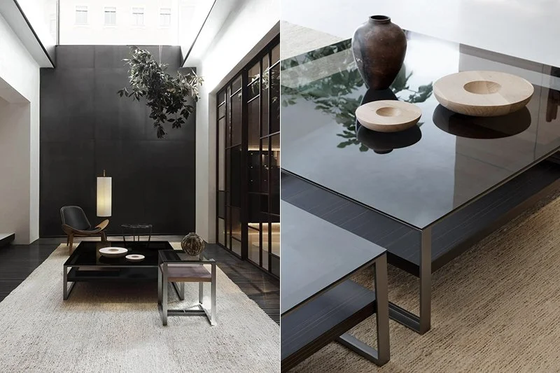 글래스와 알루미늄의 하이테크 무드를 잘 느낄 수 있는 커피 테이블입니다.