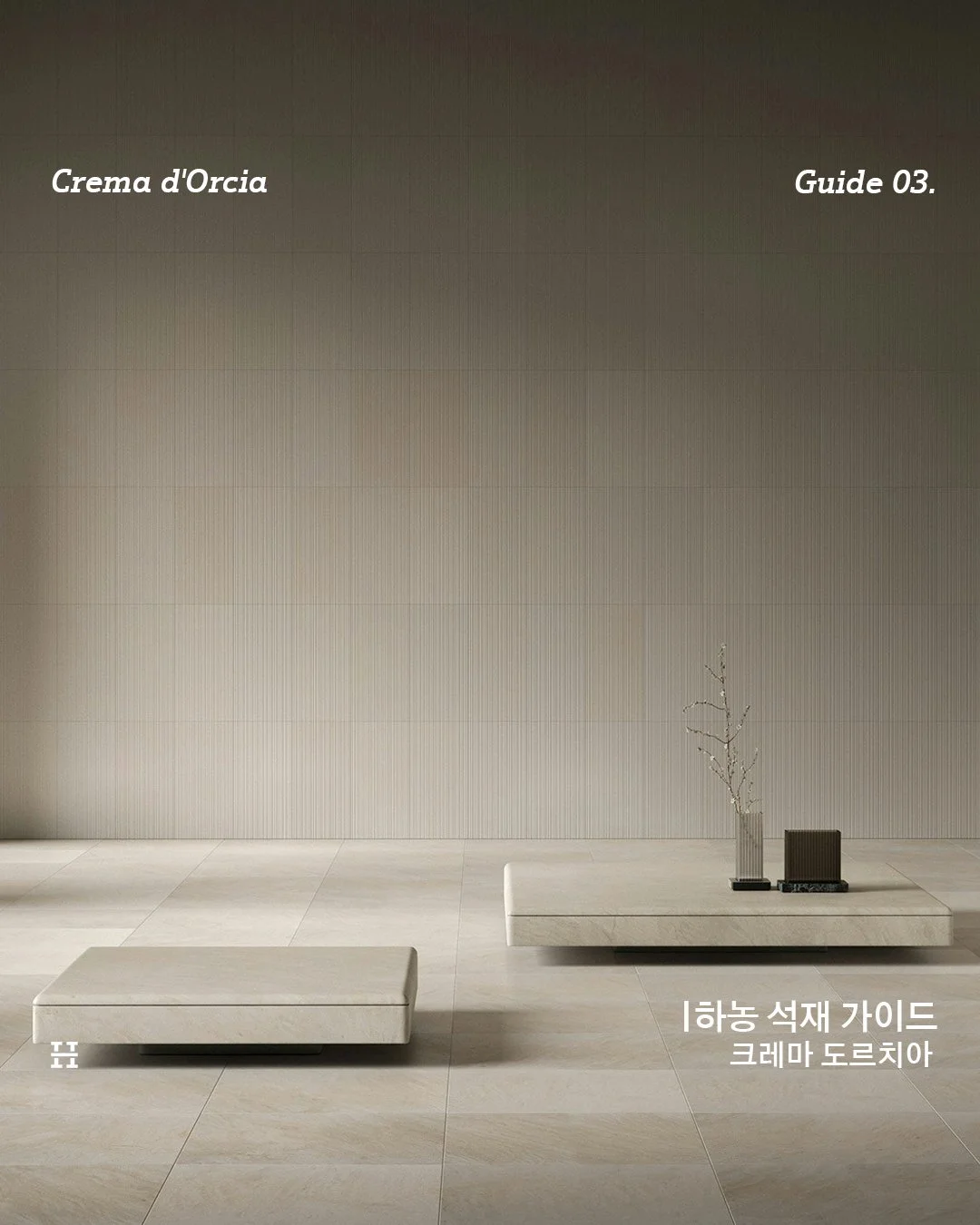 하농 석재 가이드#3. 부드러움 속에 담긴 깊은 아름다움, 크레마 도르치아(Crema d’Orcia) 스톤