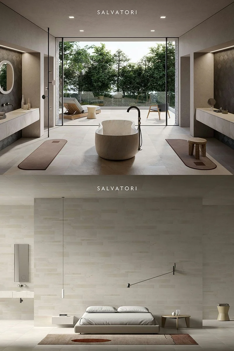 (1) Crema d’Orcia Honed, (2) Crema d’Orcia Lithoverde®