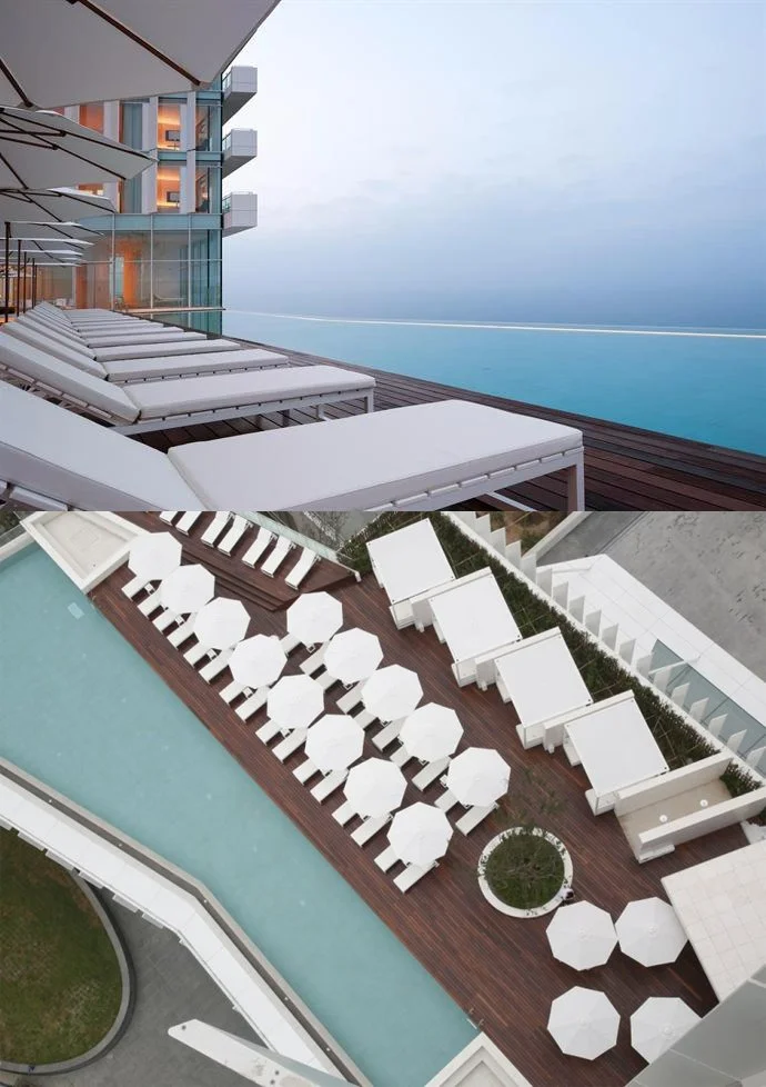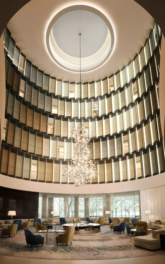27m 높이에 이르는 아트리움과 로비, 정원이 있는 파티오, 레스토랑 역시 곡선 구조를 적극 활용했습니다. 루프탑에 위치한 파노라마 스파는 탁 트인 시티뷰 전망을 갖추어 럭셔리 무드를 배가합니다.