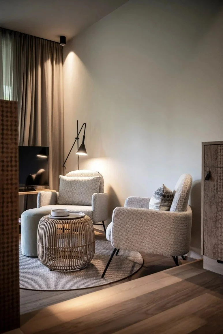 34개의 프라이빗한 스위트룸은 너른 테라스를 보유해 바다의 풍경을 여유롭게 즐길 수 있습니다. 내추럴하고 편안한 인테리어와 스타일리시한 가구들로 코지하게 연출하였습니다.
