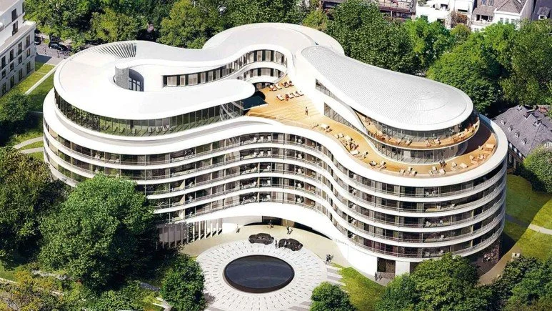 주변 경관을 모티브로 한 외관은 3개의 원이 겹쳐진 듯한 이색적인 형상으로 도시의 시그니처 건물이 됩니다.