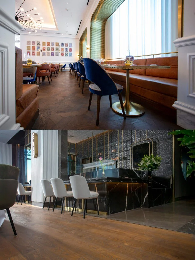 유럽 건축 스타일과의 조화를 꾀하였으며, 아르누보 스타일의 가구, 고급 석재, 글로시한 메탈 소재 등을 통하여 고전적인 아름다움과 화려함이 느껴집니다.