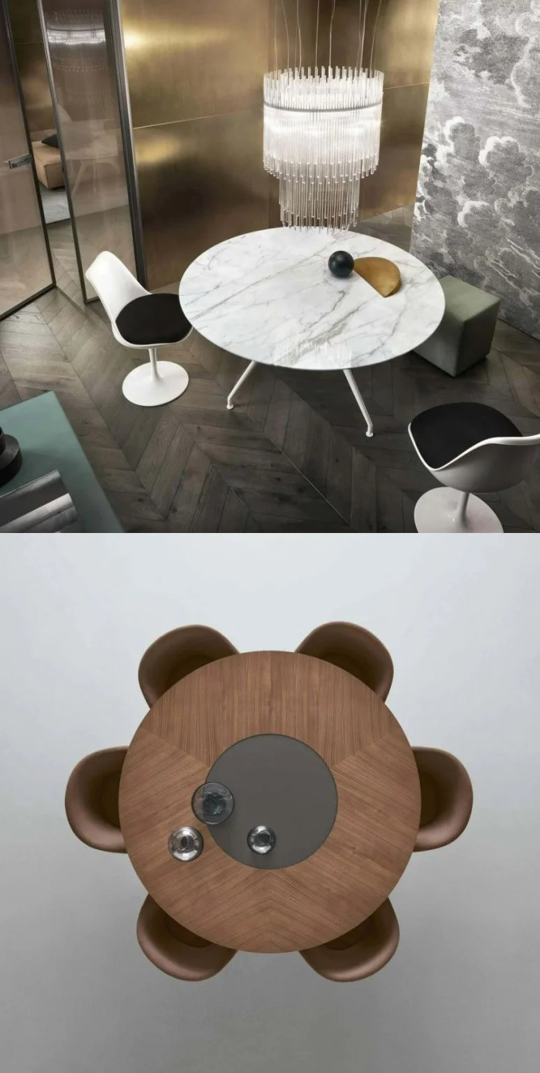 원형, 정사각형, 직사각형 형태와 글래스, 우드, 마블 소재로 다채롭게 변경 가능합니다.