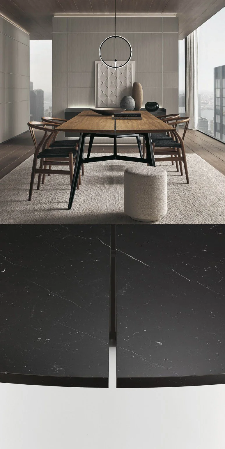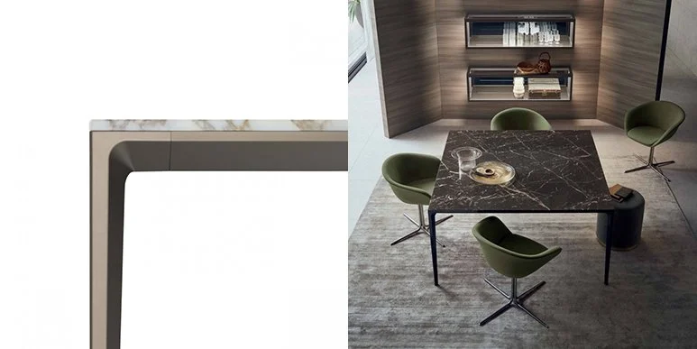 대리석, 우드, 글래스 등 약 100개의 상판 옵션을 보유하기에 상판 소재에 따라 다른 무드로 연출이 가능하다는 브랜드만의 장점이 집약되었습니다.