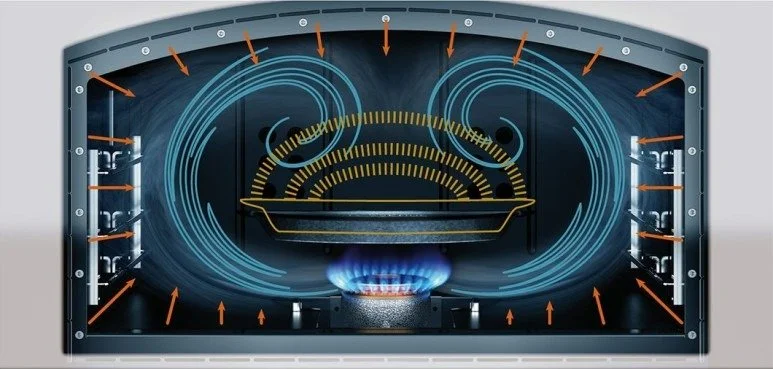 일반 사각형 구조의 오븐은 아래에서 위로만 열이 단편적으로 전달되어 음식이 고르게 익지 못하는데요.