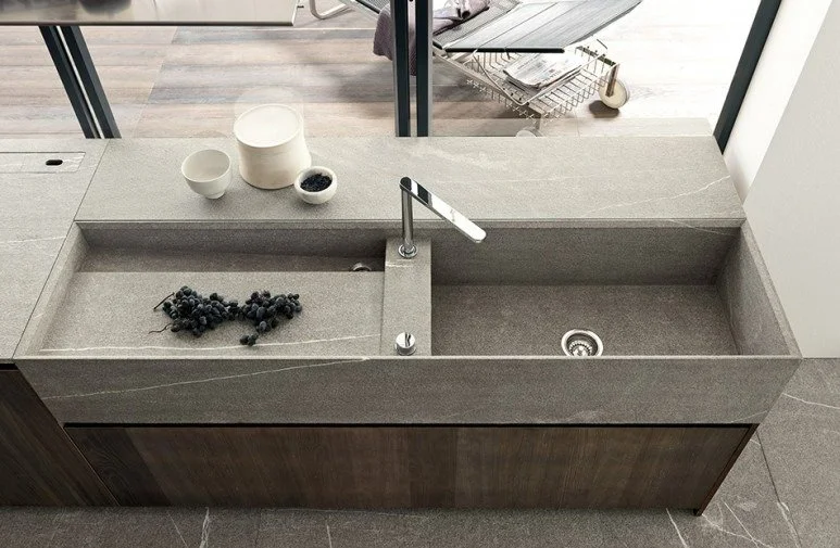 모듈노바 베스트셀러 트웬티 레진, 이름에서 알 수 있듯 기존 주방에 사용하지 않았던 레진 시멘트를 최초로 주방 가구에 적용한 모델로 관심을 모았습니다.