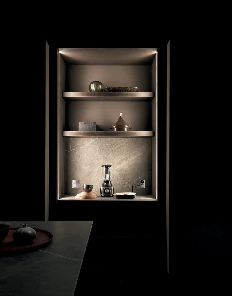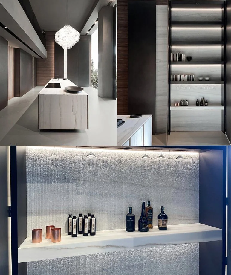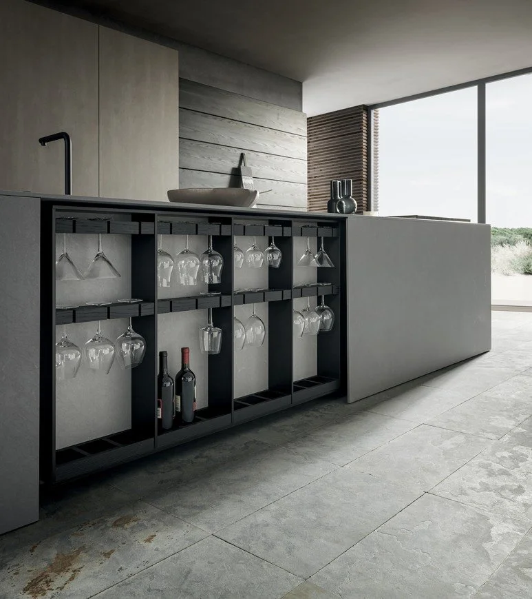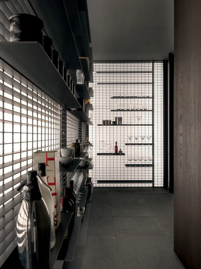 한편 모듈노바는 2022 밀라노 디자인 위크에서 거대한 사이즈의 블레이드 장에 와인 글라스 랙, 선반을 적용해 이색적인 홈바 인테리어를 제안하기도 했습니다.