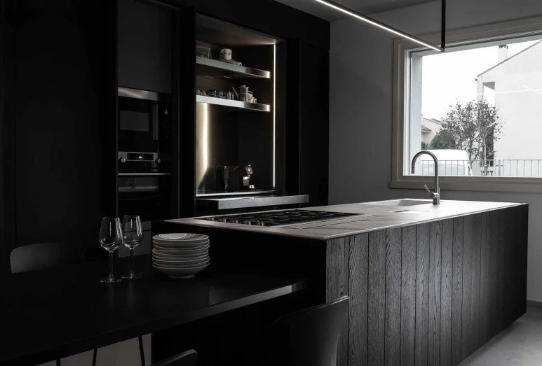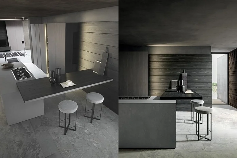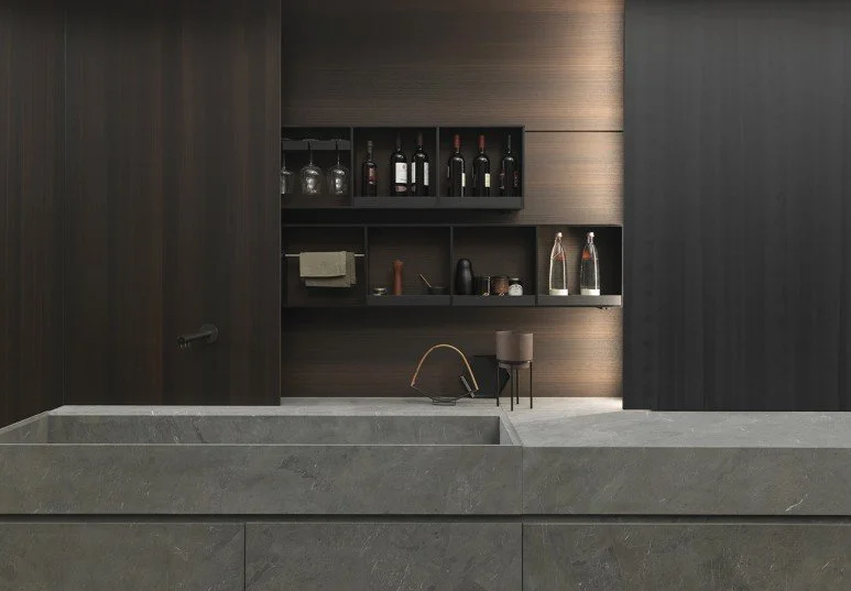 주방 전반의 요소를 세심하게 고려하여 드라마틱하고 만족스러운 홈바 연출을 도와줍니다.