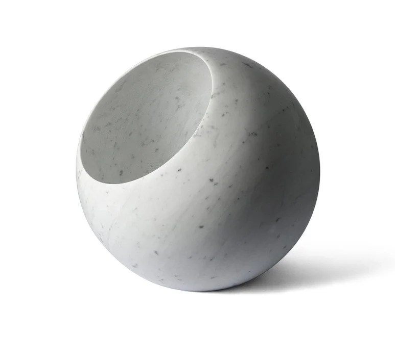 완벽한 구체 모양과 그 중심부터 퍼져 나오는 은은한 빛은 비앙코 카라라 마블이 가진 미감을 더욱 강조하는 역할을 합니다.
