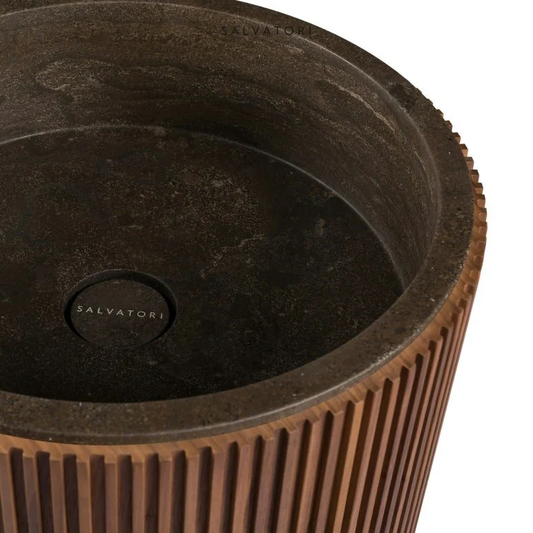 부드러운 쉐입과 골이 진 패턴이 입체적인 무드를 전하는 아다 세면기, 나무 본연의 질감을 생생하게 재현에 욕실에 따스하고 우아한 감성을 부여합니다.