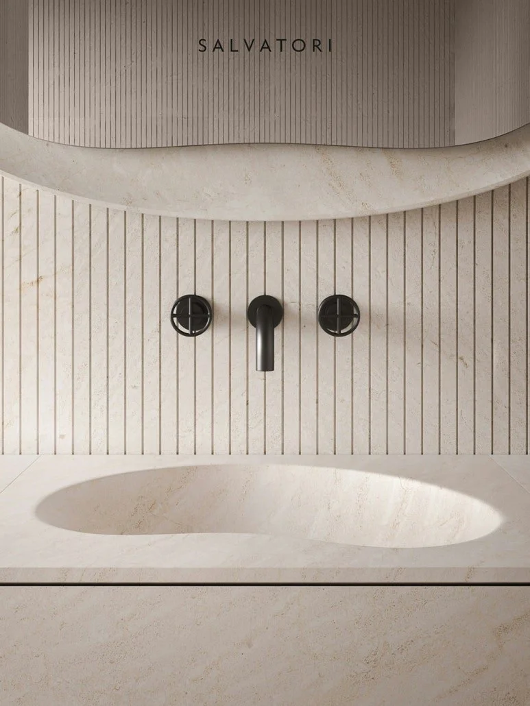 천연석의 텍스처와 유려한 형상이 맞물려 욕실 속 예술적인 아트피스가 됩니다. 프리스탠딩, 카운터 탑, 월마운트 등 다양한 타입으로 적용 가능합니다.