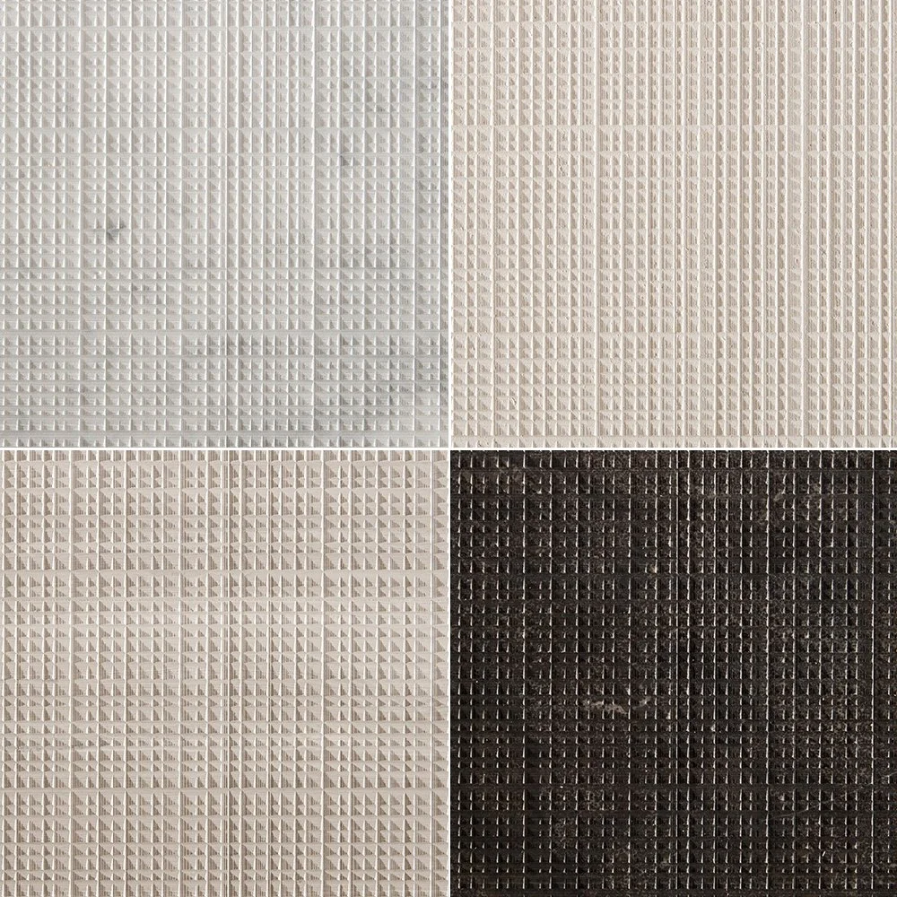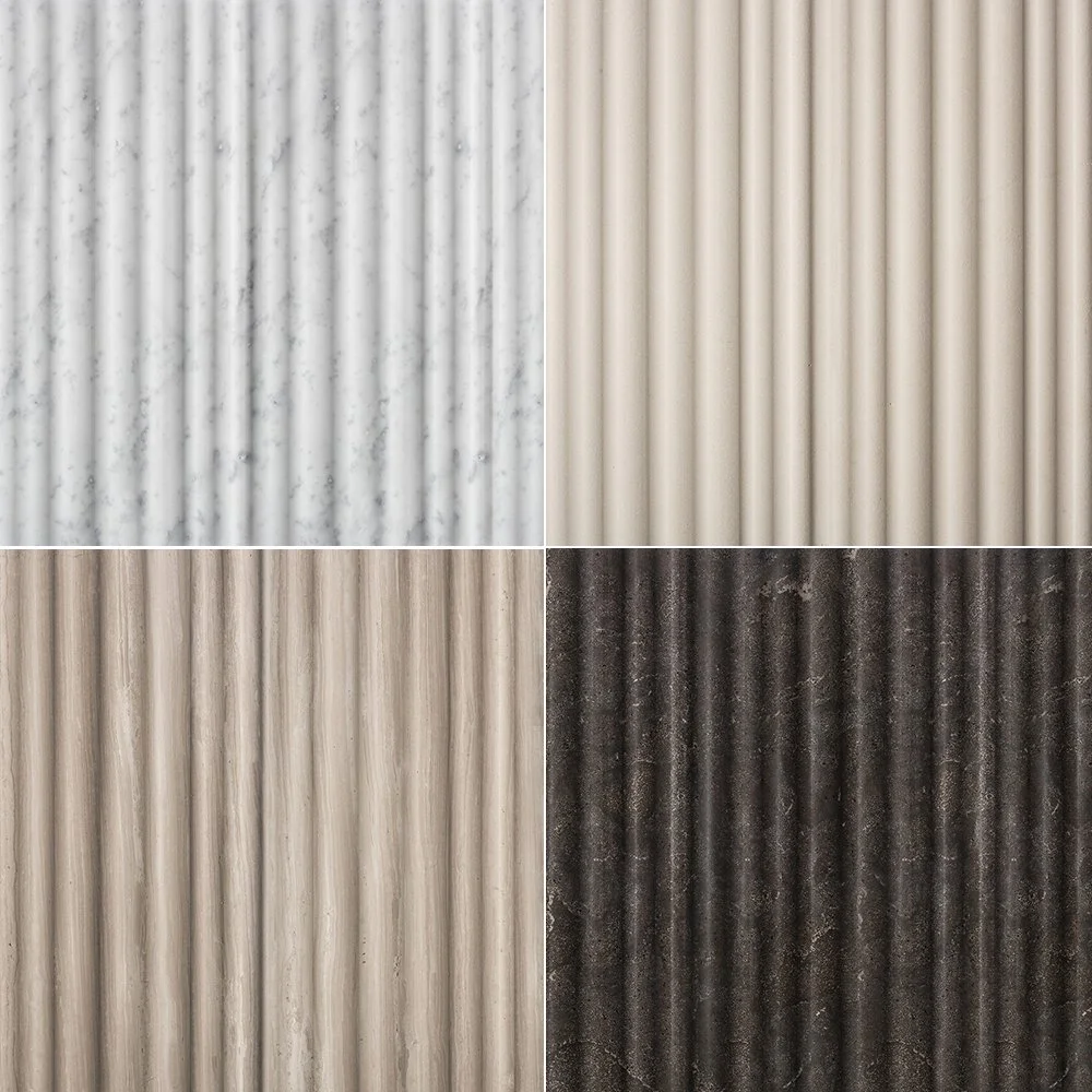 비앙코 카라라(Bianco Carrara), 크레마 도르시아(Crema d’Orcia), 피에트라 다볼라(Pietra d’Avola), 실크 조젯(Silk Georgette) 4가지 석종으로 변화를 줄 수 있습니다. 610 X 305 X25mm 단일 사이즈로 제공됩니다.
