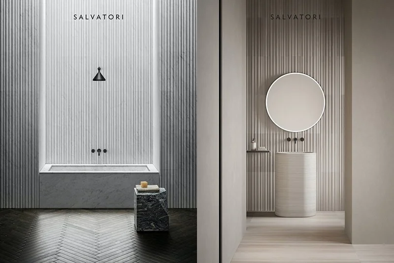 기존 대리석 제품들은 비규격화된 대형 사이즈로 가공이 어렵다는 단점을 가지고 있는 것과 달리 살바토리는 대리석을 타일처럼 모듈화하고 독창적인 패턴을 입혀 시공과 가공을 용이하게 만들었어요. 내외장재로도, 컨셉추얼한 공간에 포인트 아트 월로도 손색이 없답니다.