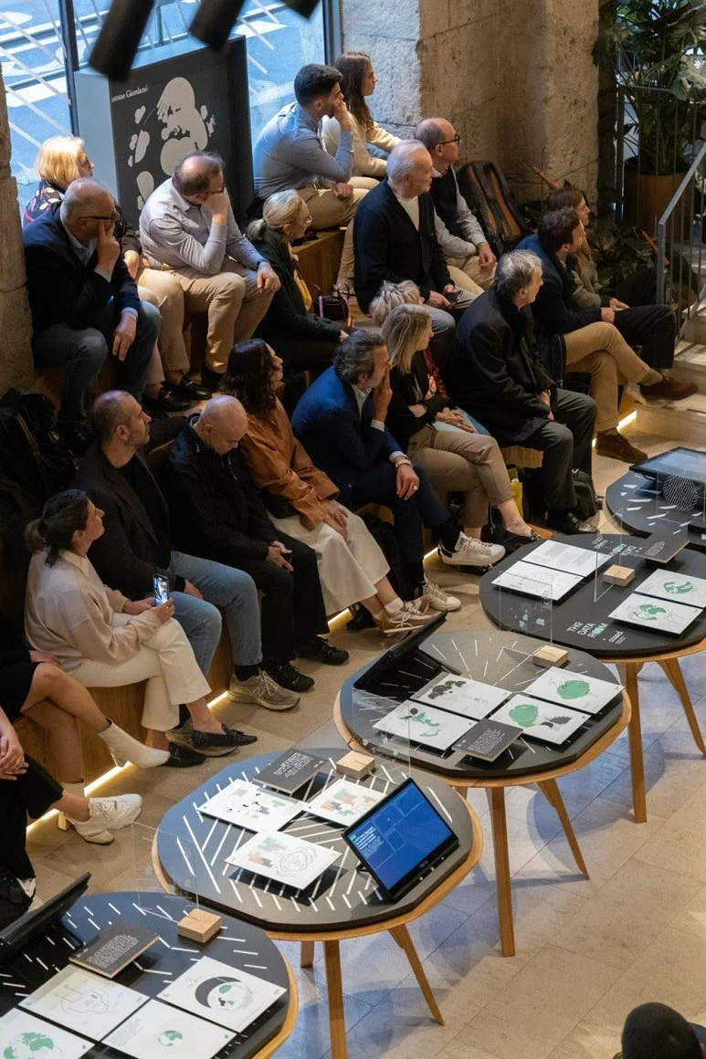 조르다노는 밀라노 디자인 위크에서 이 시대의 가장 필요한 ‘순환 경제’와 ‘하이테크 디자인’이라는 주제를 다뤘습니다.