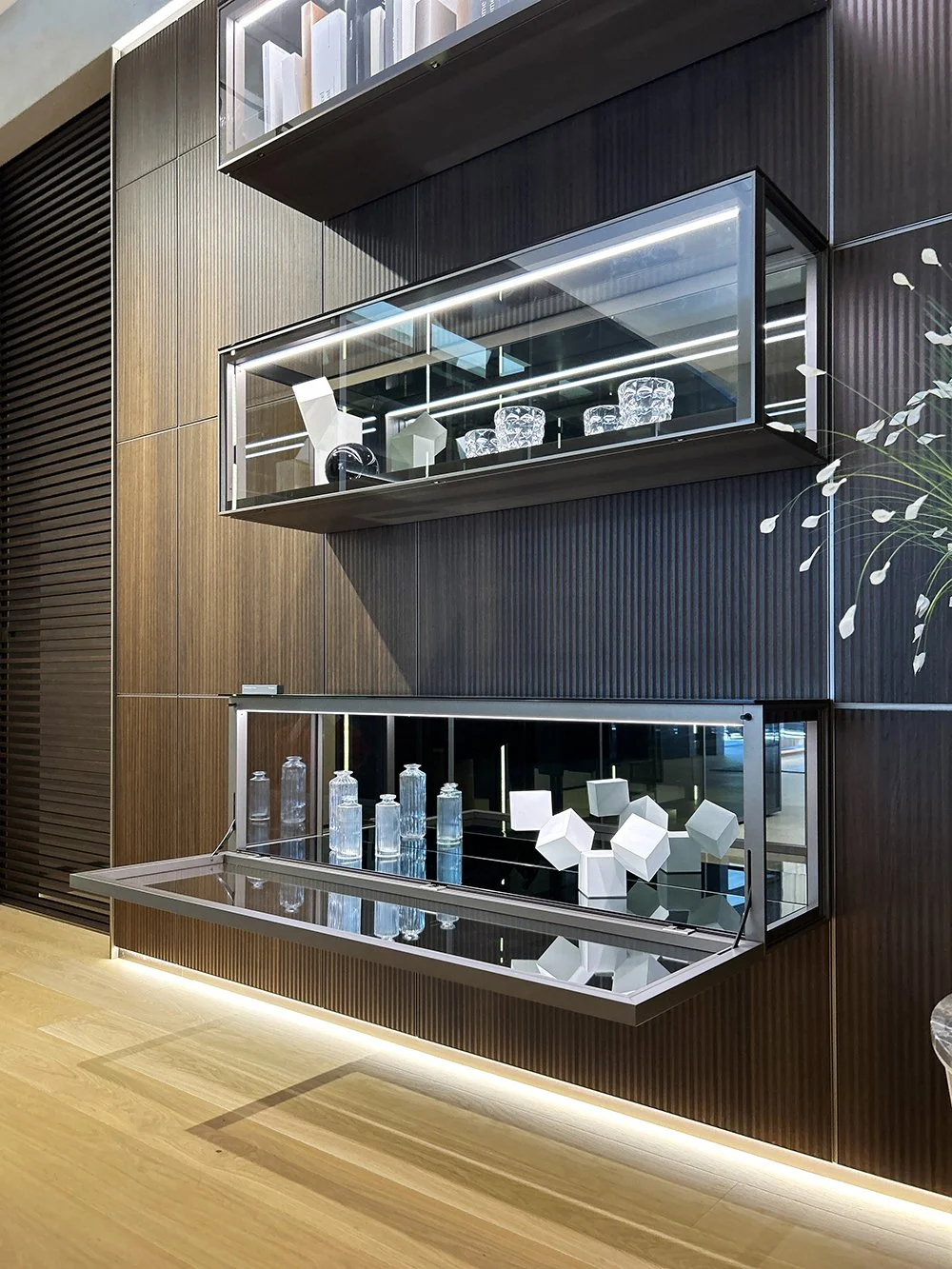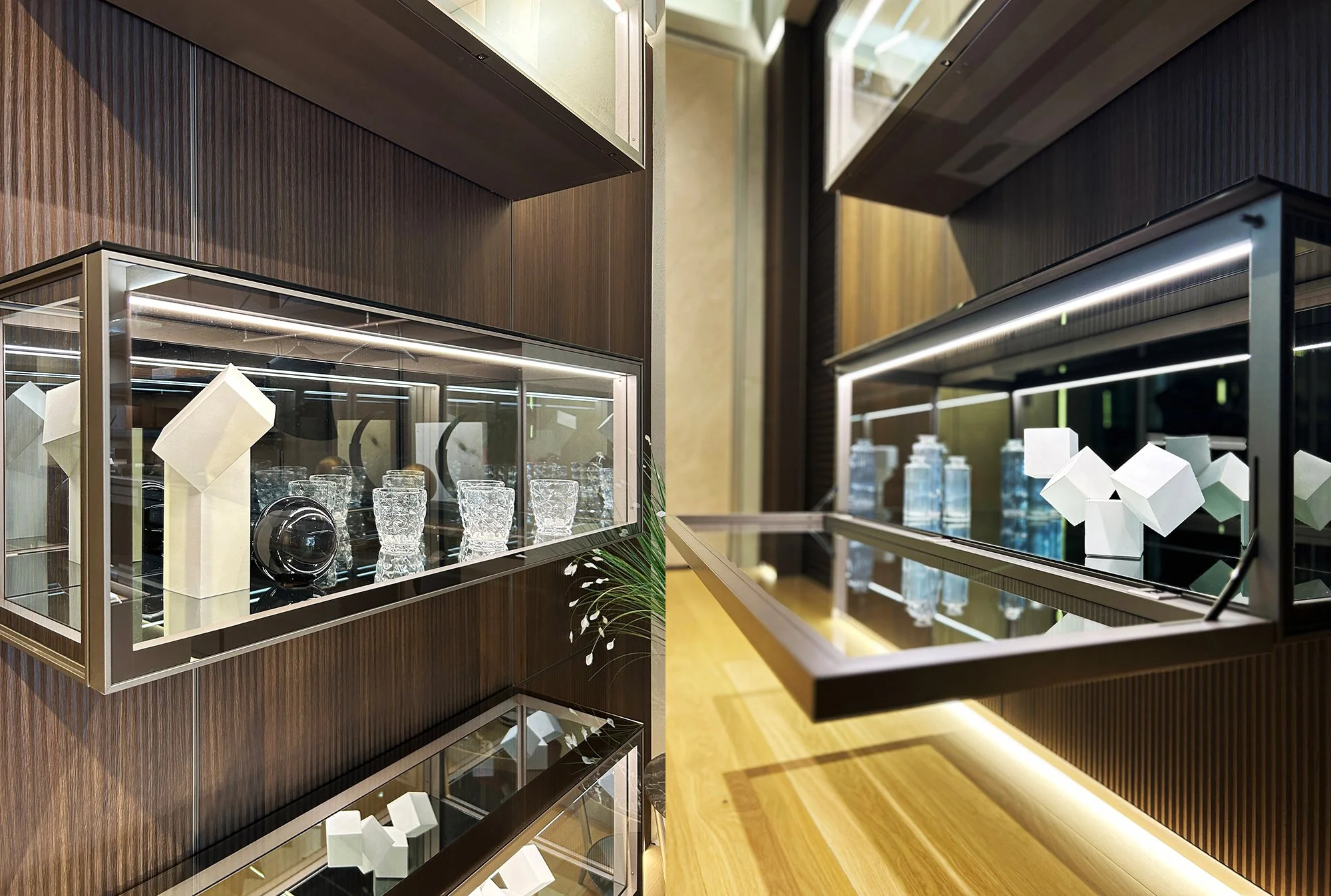 날렵한 알루미늄 프로파일에 LED 시스템이 깔끔하게 숨겨져 있습니다. 전선과 안정기가 보이지 않는 정밀한 설계와 정교한 매커니즘 도어로 완벽한 디테일을 추구합니다.