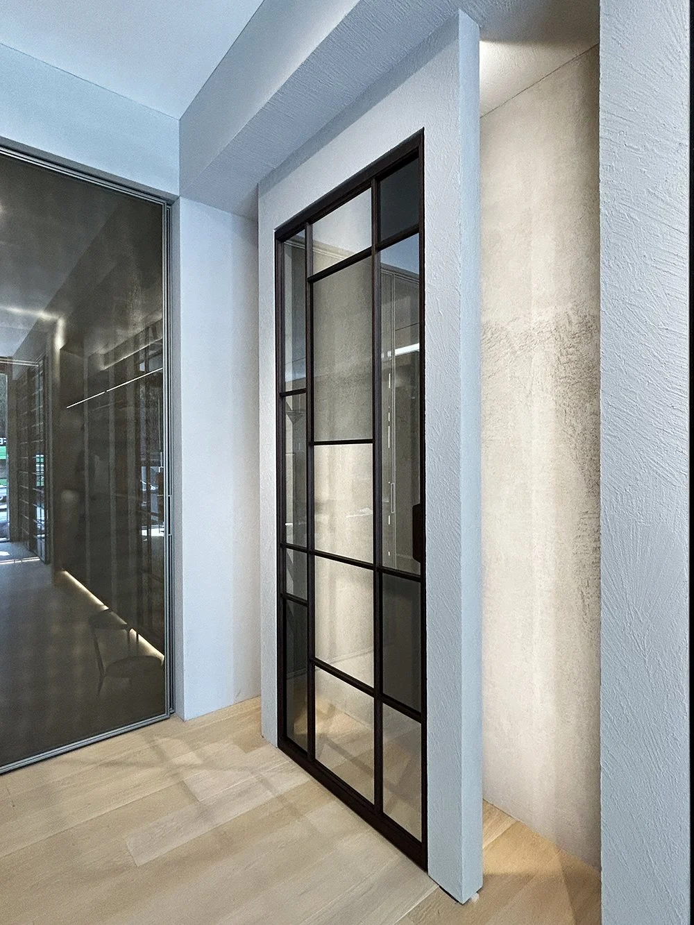 원 도어 타입은 304 플래티노(Platino) 프레임과 404 플래티노 디아만떼(Platino Diamante) 글래스 패널로 마감하여 도어의 모던 무드를 극대화하였습니다.