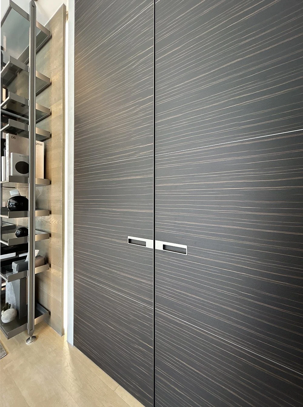 양개형 타입은 700 틴토 에바노 따이가(Tinto Ebano Taiga) 우드 마감으로 중후함과 따뜻함을 조성하며, 도어 높이를 천장까지 올려 웅장한 분위기가 느껴집니다.