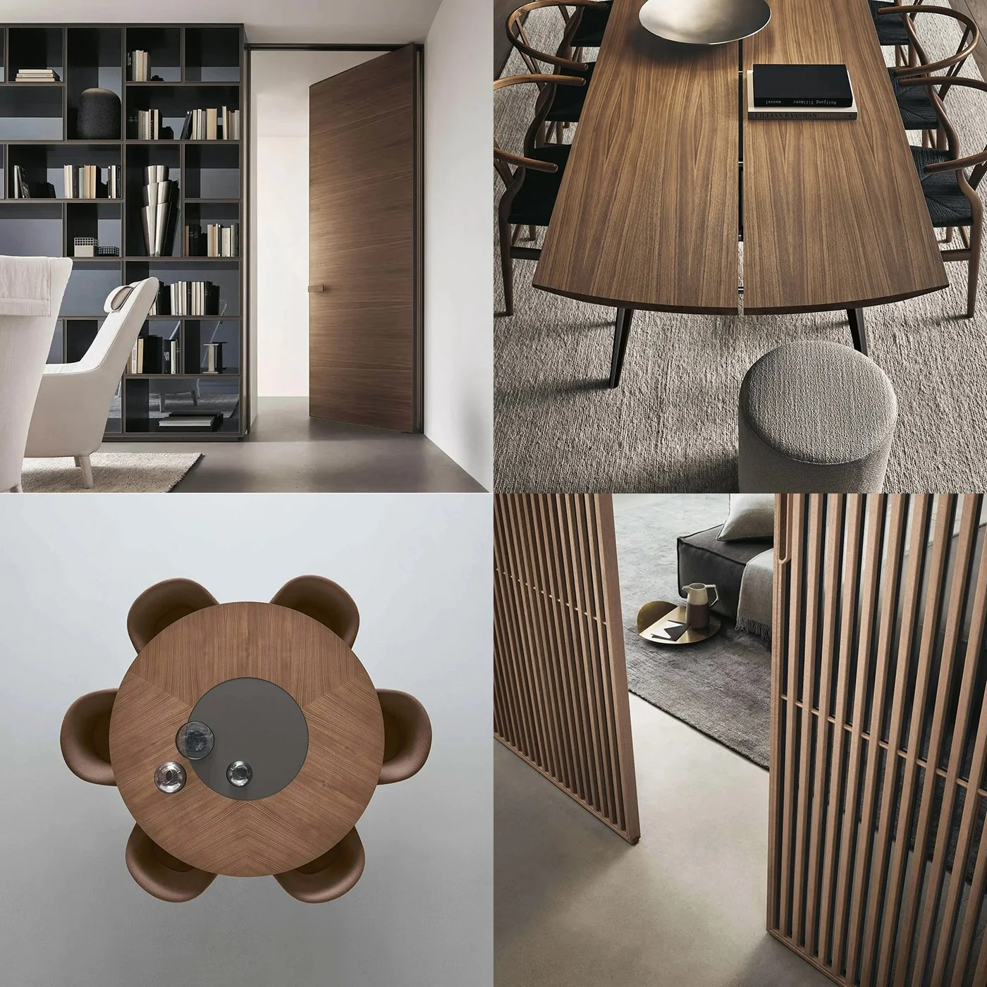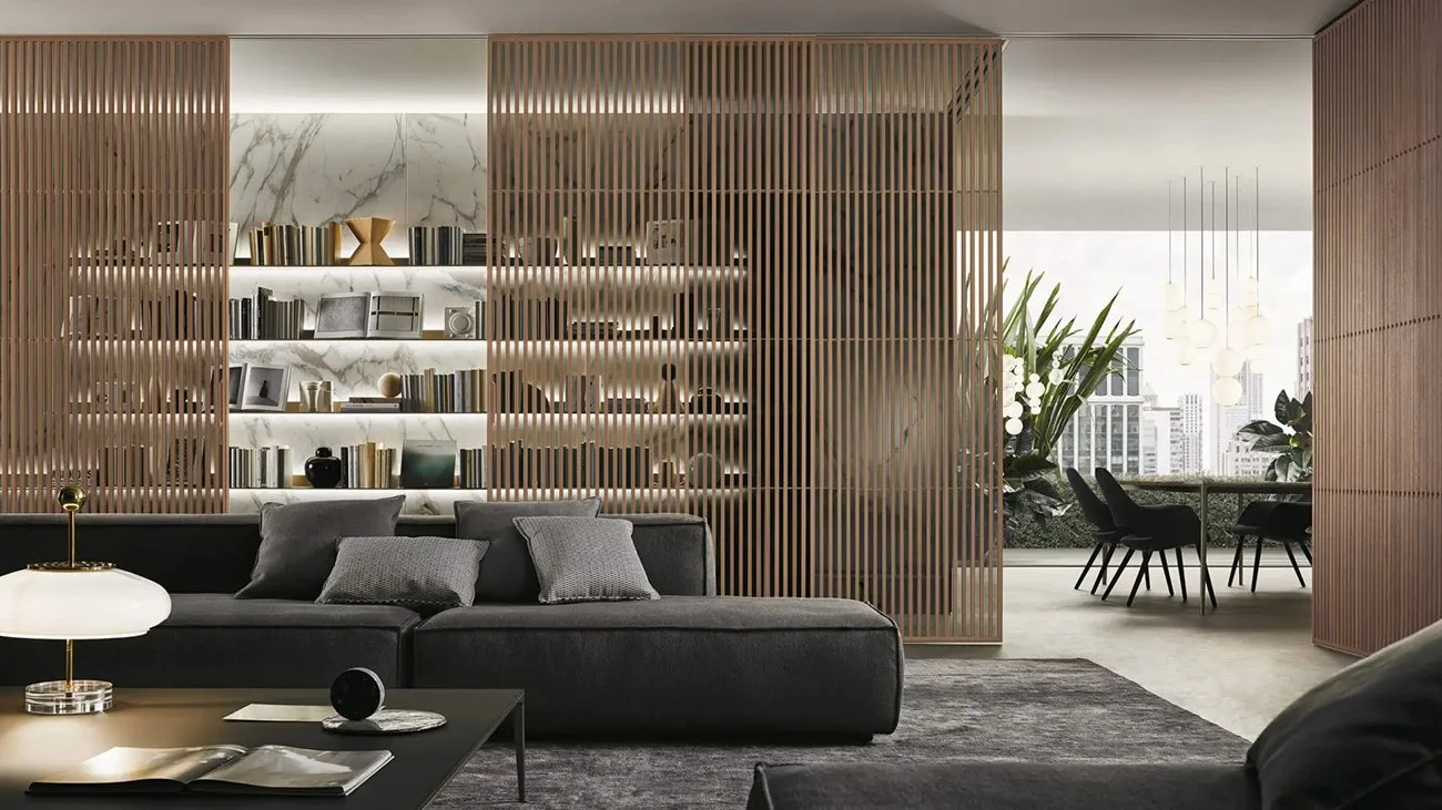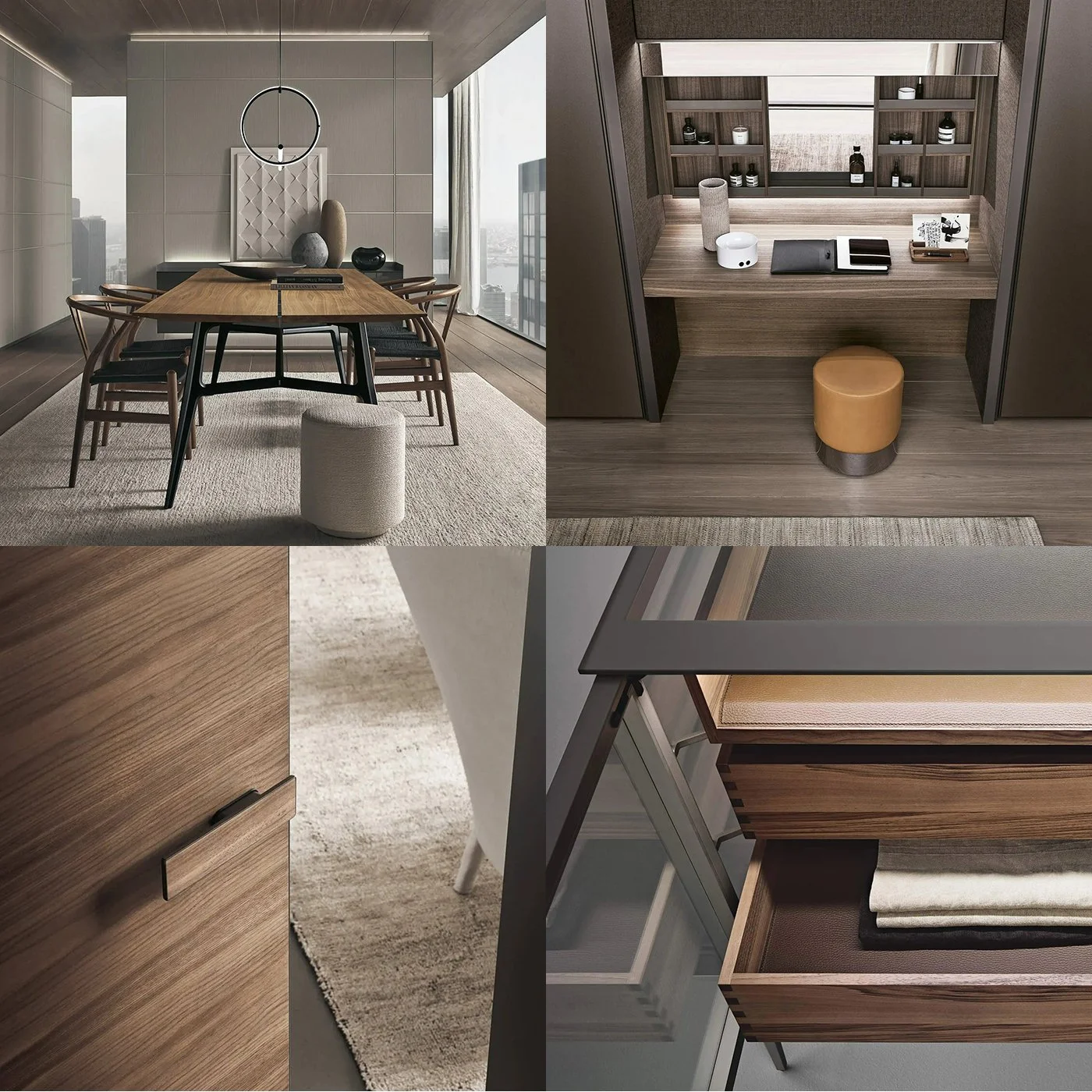 리마데시오가 2022년 밀라노 디자인 위크에서 새롭게 선보인 마감입니다. 우드 소재에 수평으로 뻗어나가는 입체적인 줄무늬 패턴을 새겨 모던함과 클래식함이 함께 공존합니다.