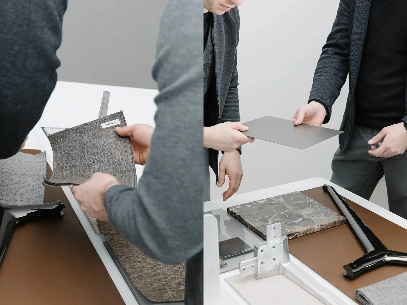 알루미늄, 글래스, 레더, 패브릭, 멜라민, 대리석, 리테크까지 한계 없는 인테리어 표현을 위한 신소재를 폭 넓게 발굴하고 보유합니다.