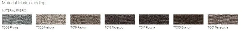 그레이 컬러의 피우마(Piuma), 뉴트럴 계열의 네비아(Nebbia), 빠피로(Papiro), 브라운 계열의 타바코(Tabacco), 로챠(Roccia) 등 패브릭의 특성을 고스란히 살린 7가지의 웜 컬러를 베이스로 합니다.
