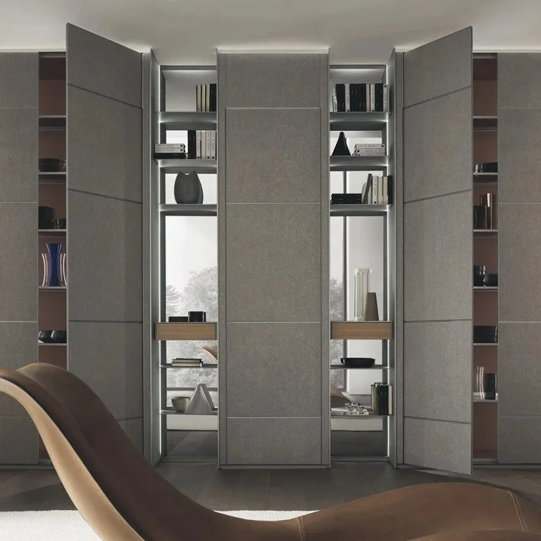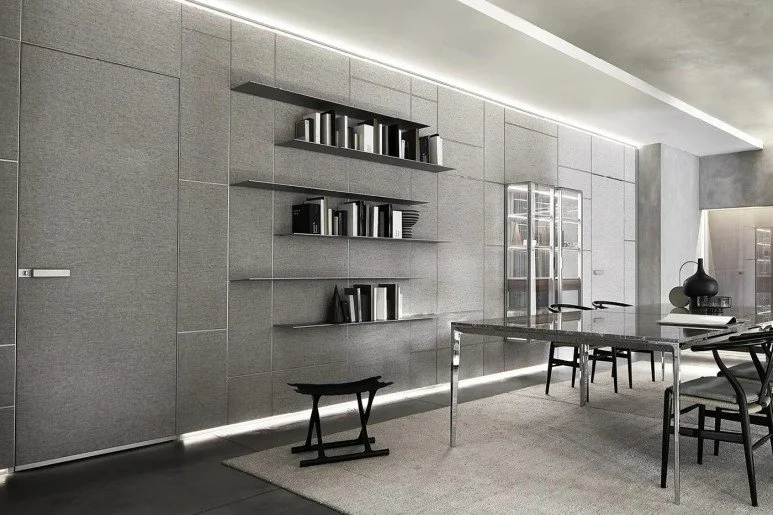 필요에 따라 선반, 수납, 데스크, 사이드보드 등의 가구를 자유롭게 배치할 수 있는 것이 강점인데요. 도어를 동일한 소재로 마감 시 감도 높은 히든 도어로의 연출을 도와줍니다.