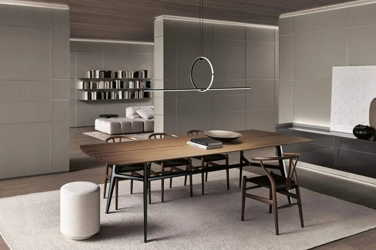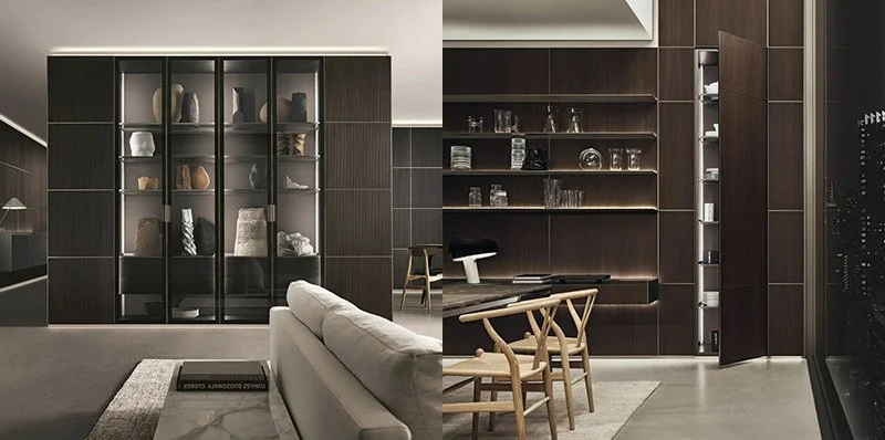 월넛 특유의 따뜻한 무드와 세밀한 물결 패턴이 시선을 사로잡으며 실내의 품격을 올리는 데 톡톡히 일조합니다.