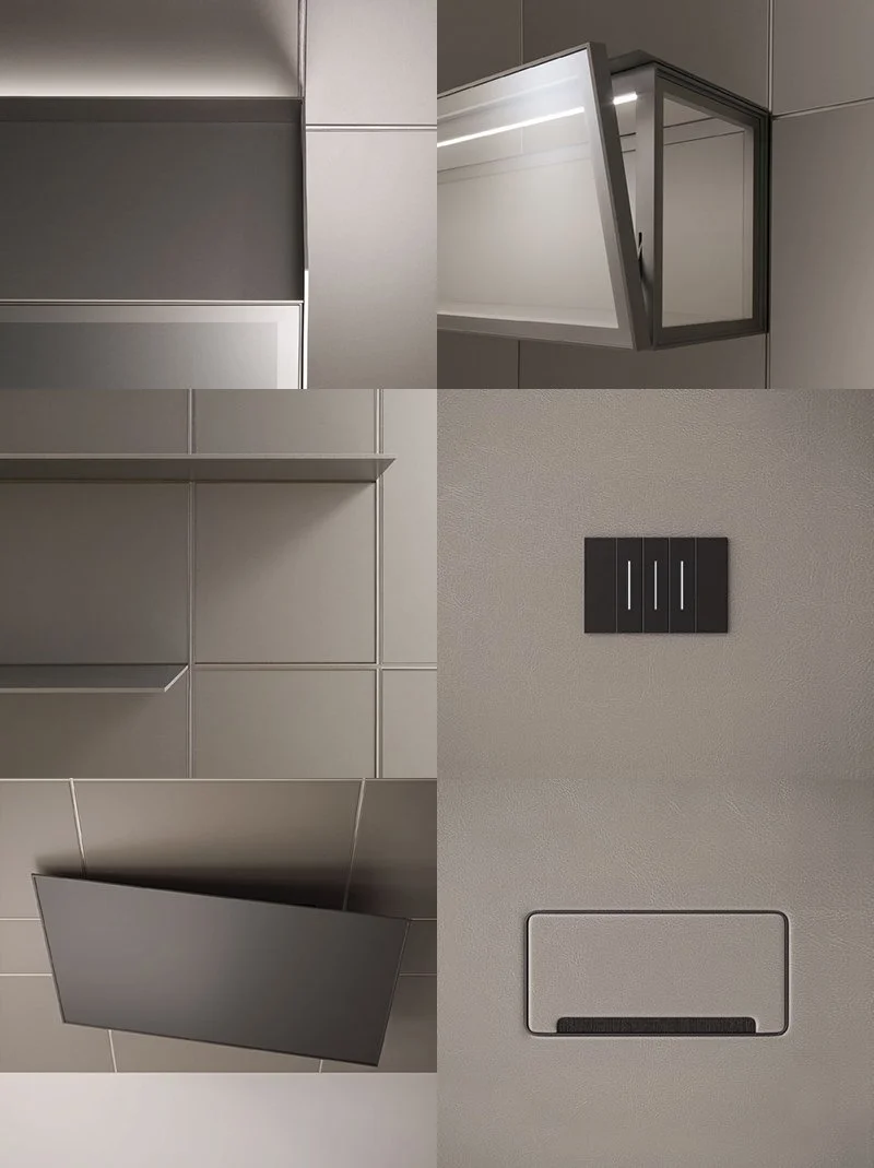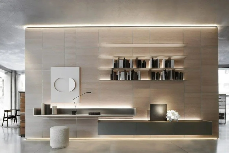 철저하게 설계된 입면 레이아웃을 통해 스위치 소켓, 케이블 덕트, TV, 가구 위치를 깔끔하게 설정할 수 있으며, 패널 상하부에는 은은한 LED가 탑재됩니다.