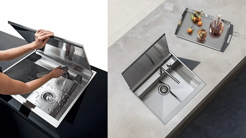 커버가 탑재된 랩 커버 싱크(Lab Sink with Cover)는 바라짜의 인기 아이템으로 커버 안으로 싱크와 수전이 완전하게 숨겨집니다.
