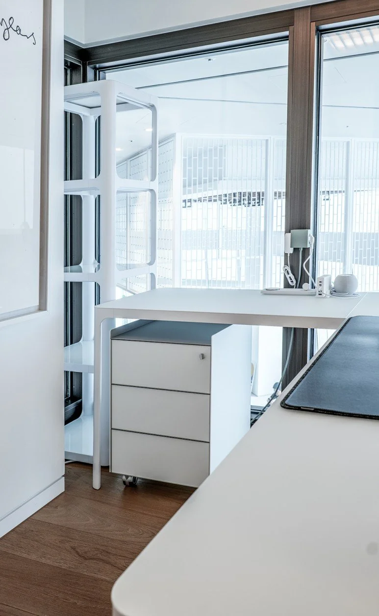 업무 능률을 올려주는 유리 파티션, 선반, 트레이, 케이블 덕트, 하부장 액세서리 등을 겸합니다.
