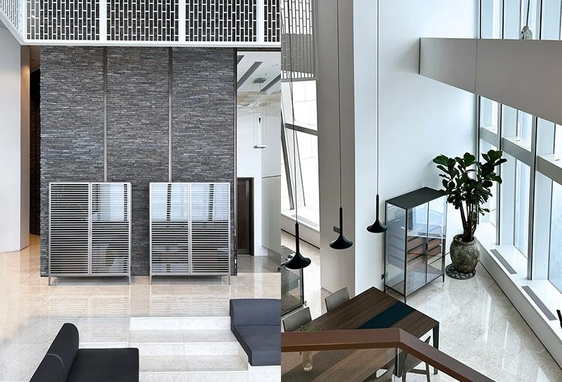 모듈 시스템의 글래스 월 패널을 기반으로 숨겨진 프로파일과 구조를 더하여 수준 높은 디테일을 구현합니다.