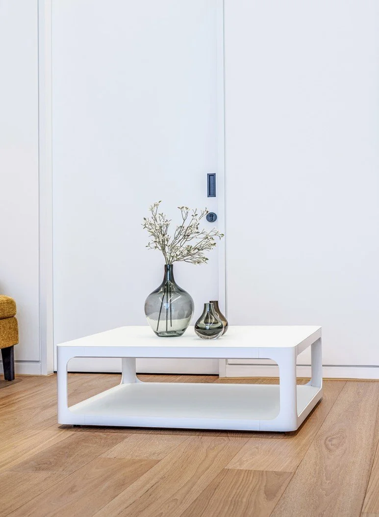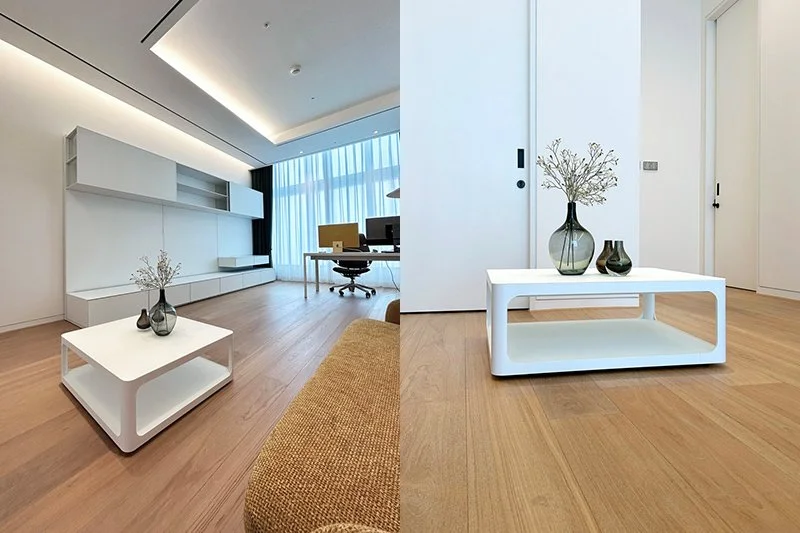 서브룸에는 비앙코 네베 컬러(95 Bianco Neve)의 정사각형 테이블을 두어 공간 전체의 조화를 유도했습니다.