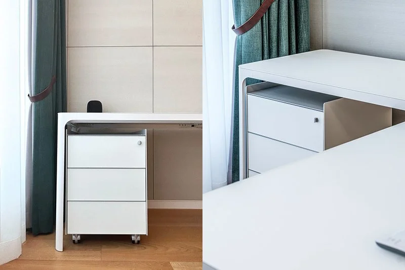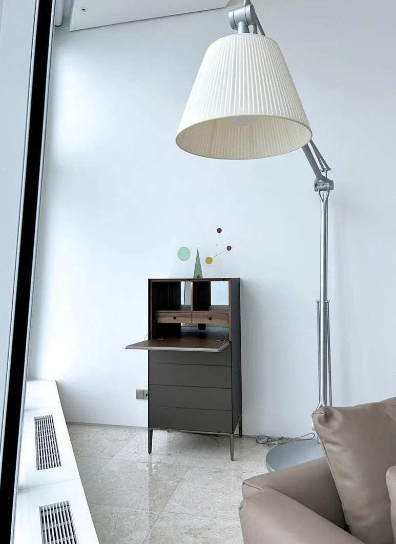 내부에서 은은하게 뿜어져 나오는 빛과 바디 컬러가 맞물려 서재에 세련된 흐름을 부여합니다.