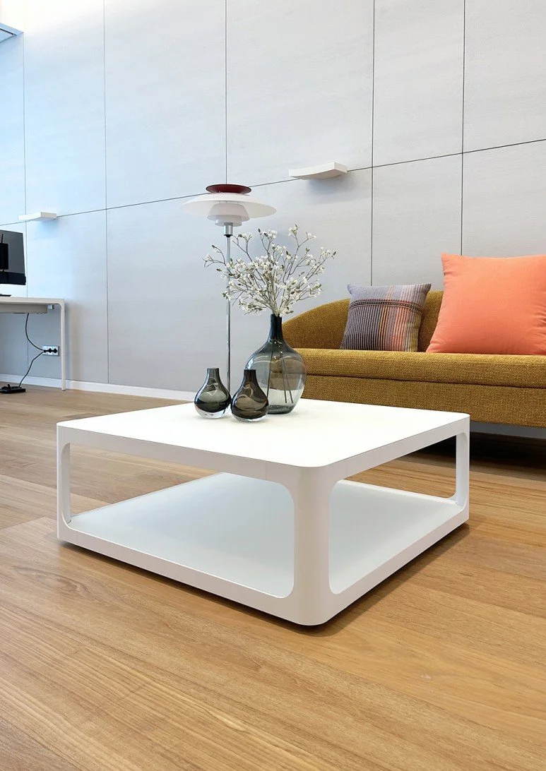 식스티 커피 테이블은 식스티 모듈을 베이스로 탄생된 모델입니다. 식스티 모듈과 마찬가지로 테이블 전체 쉐입에서 볼드한 수직 수평의 라인이 강조된 것을 볼 수 있습니다.