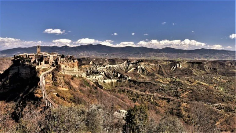 광활한 풍경 속 파노라마처럼 펼쳐진 치비타의 전경