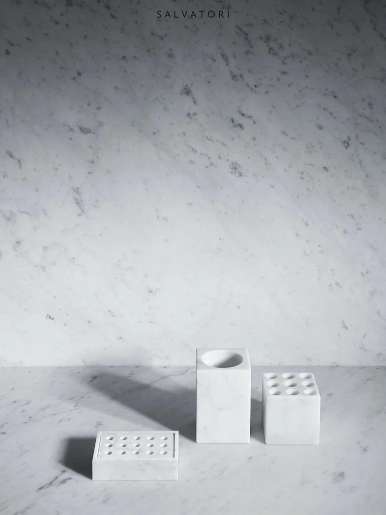 폰타네 비앙슈 컬렉션은 트레이, 비누 접시, 칫솔꽂이, 거울, 수건 걸이 등으로 구성된 액세서리 세트입니다. 제품은 투스카니 석재 장인의 세밀한 수작업을 통해 완성됩니다.