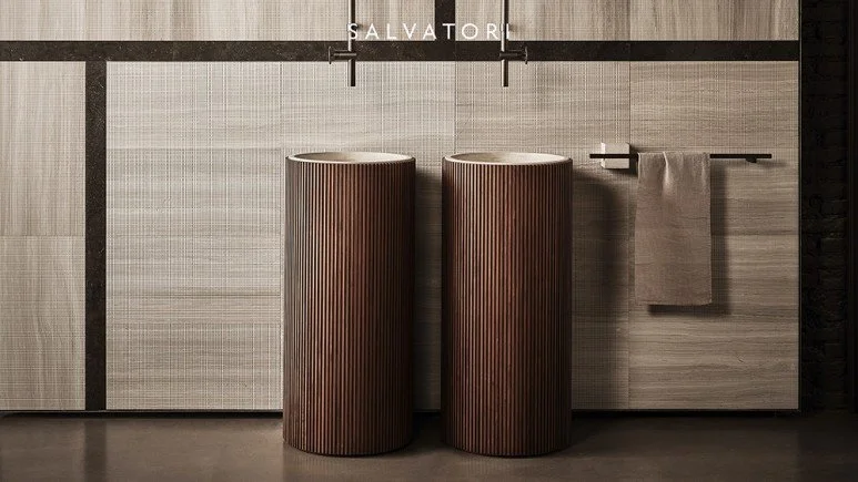 원과 스퀘어 디자인, 우드와 대리석 중 소재를 고를 수 있고 스타일과 치수, 편리함을 제공하고자 세면기를 자유롭게 결합할 수 있는 모듈식 요소를 포함합니다.