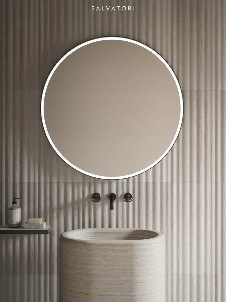 원형과 타원형으로 제공되는 아니마 거울은 부드러운 라인을 유지하는 것에 초점을 맞췄으며, 은은한 라이팅으로 차분하고 고요한 감성을 불러일으킵니다.