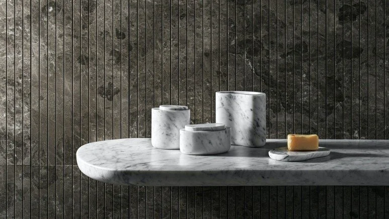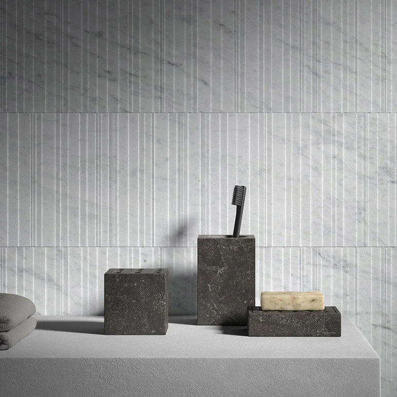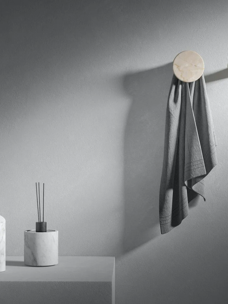 아니마 욕실 액세서리 컬렉션은 비앙코 카라라(Bianco Carrara), 크레마 도르치아(Crema d’Orcia), 그리스 뒤 마레(Gris du Marais), 피에트라 다볼라(Pietra d’Avola), 실크 조르젯(Silk Georgette) 5가지 석재로 변주가 가능합니다.