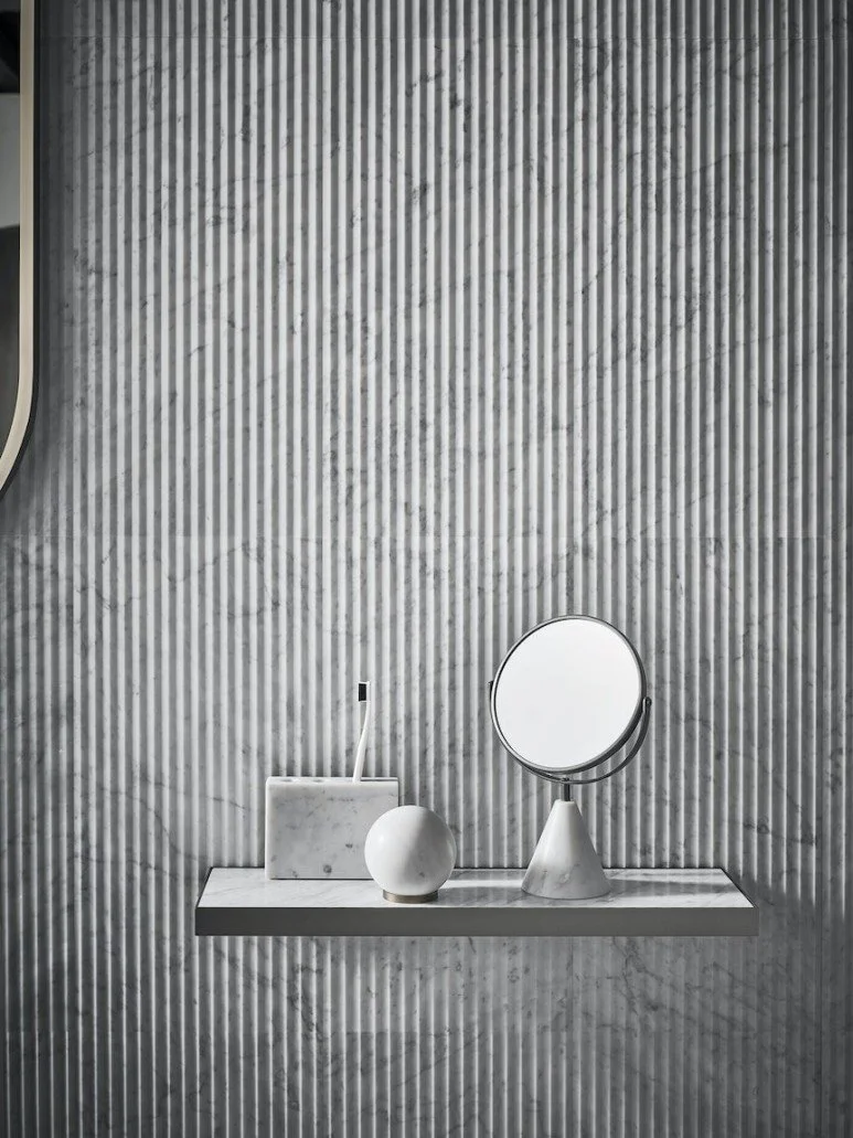 비앙코 카라라(Bianco Carrara), 피에트라 다볼라(Pietra d’Avola) 두 가지 석재를 사용하여 천연석의 특징 및 컬러가 더욱 두드러질 수 있도록 유도했습니다.
