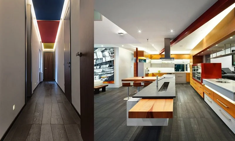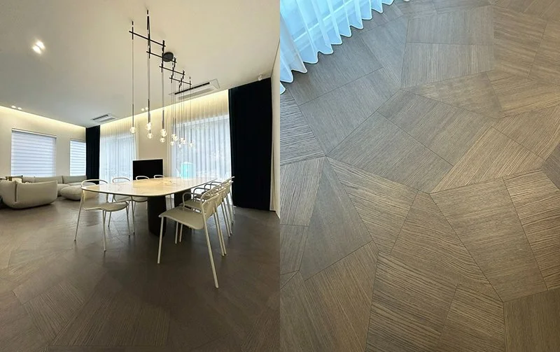 나뭇결을 살려 마루를 겹겹이 레이어링한 후, 컬러링과 오일 처리를 진행하였기에 시공 후, 색채와 텍스처, 결들이 생동감 있게 살아나는 것을 확인하실 수 있습니다.