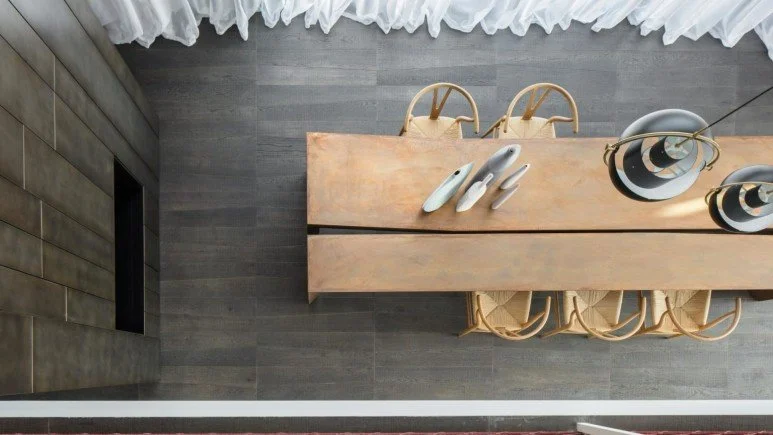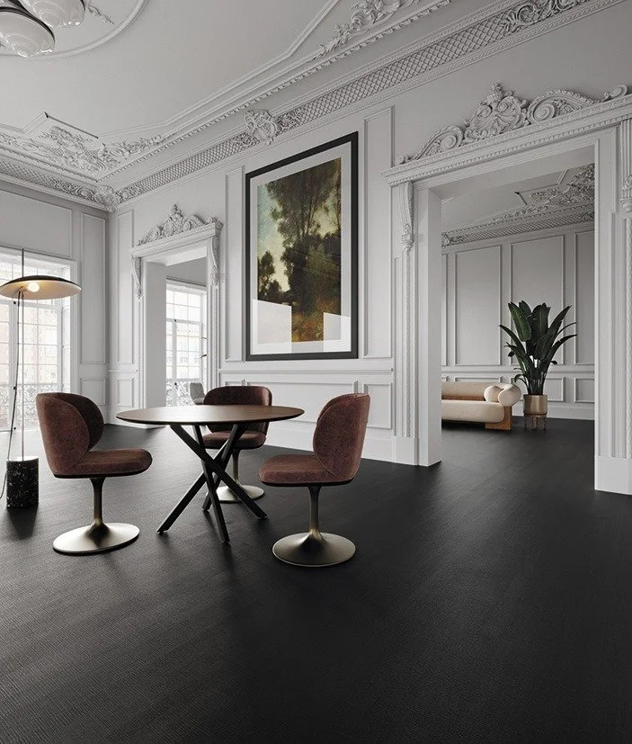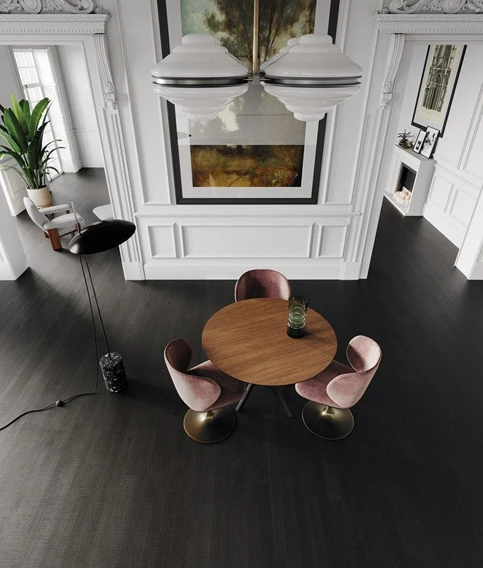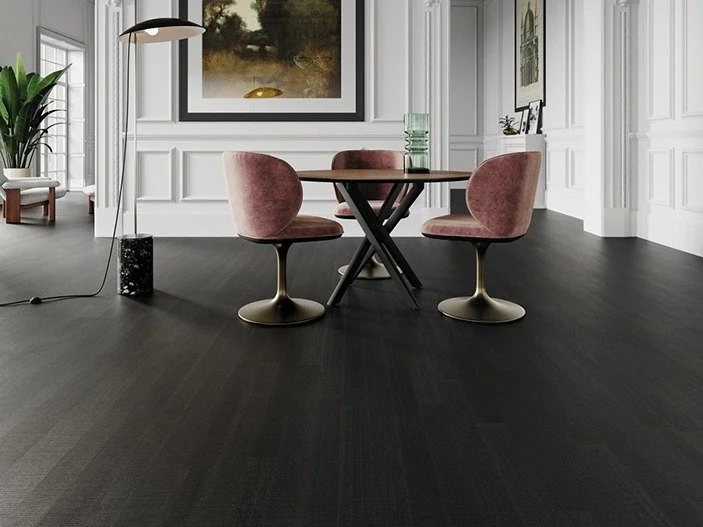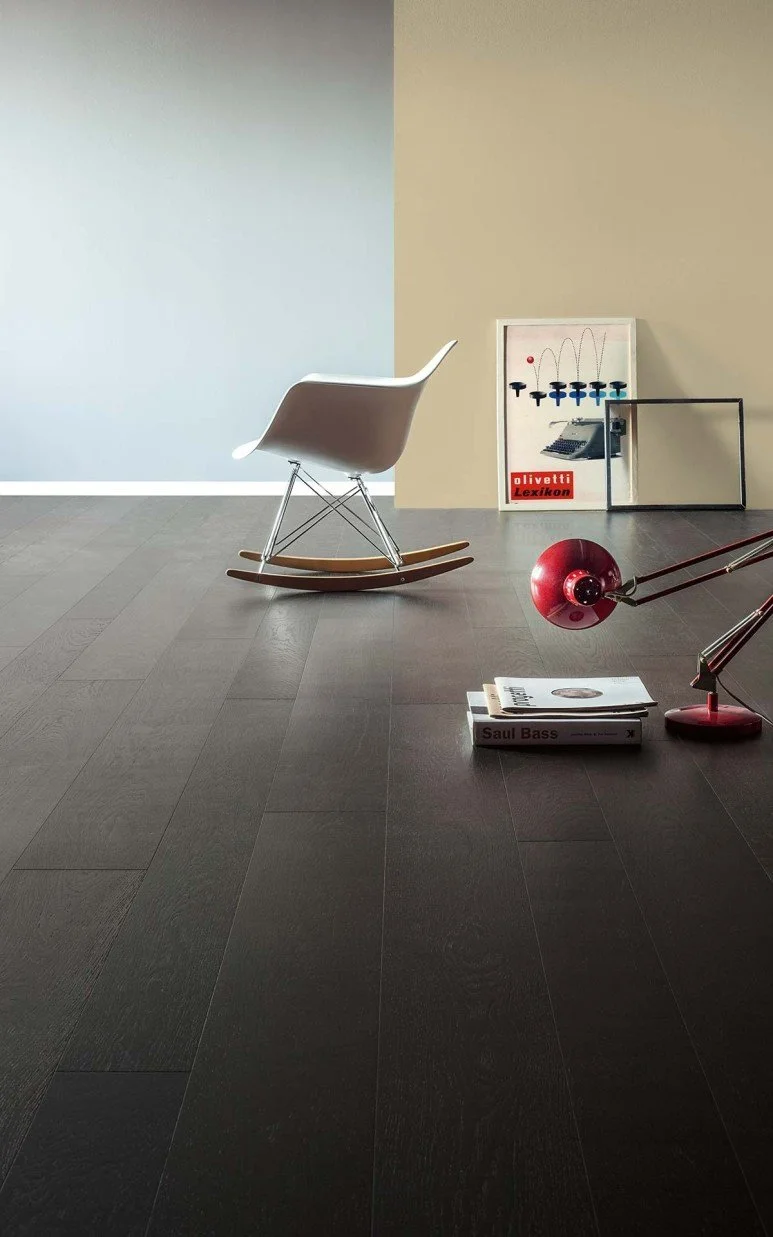 파브리끄는 마루 간 이음매가 느껴지지 않아 컬러의 아름다움을 집중력 있게 부각합니다. 윤기나는 우아한 블랙 컬러가 실내 인상을 뚜렷하게 잡아줍니다.