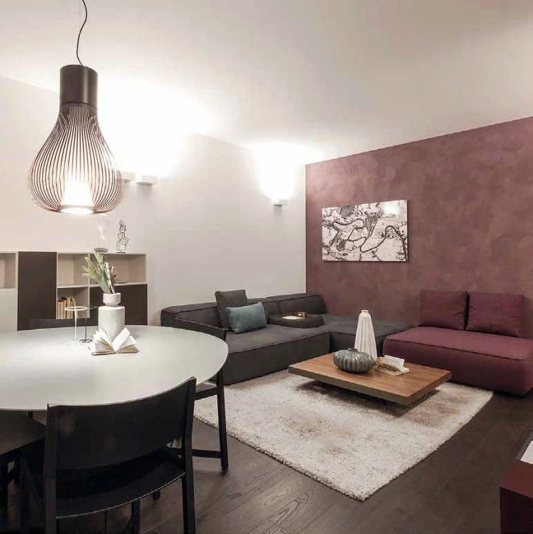 채광과 조명에 따라 아늑한 브라운 컬러와 시크한 차콜 컬러가 다르게 강조되어 이중적인 매력을 발산합니다.