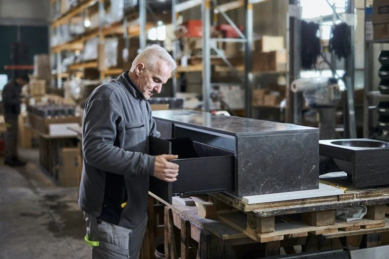 99% 폐기 돌 조각과 1%의 콩 레진 접착제로 제작되는 Lithoverde®