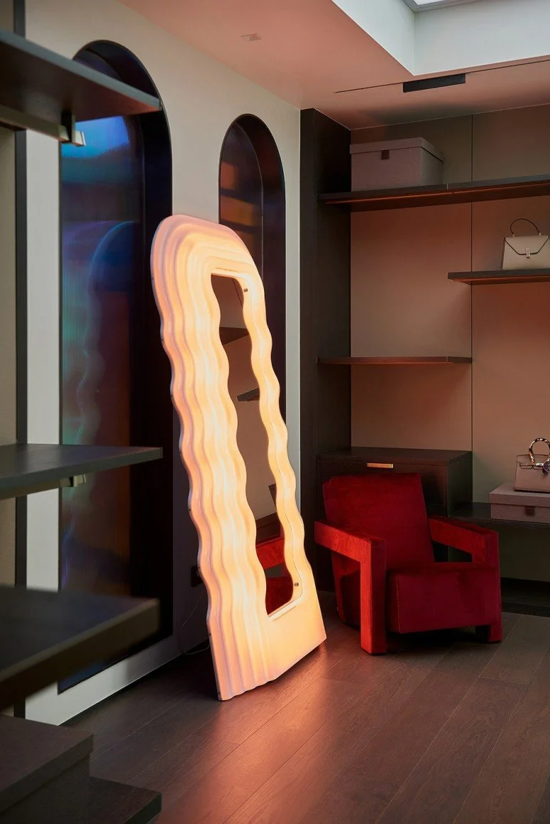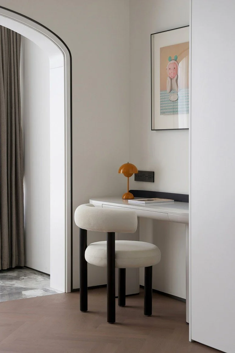 건축가는 아름다운 곡선 쉐입이나 패턴, 포인트 컬러로 활기와 재미를 주되 톤 다운된 색감을 통해 공간의 인상을 단정하게 정리하고자 하였는데요.
