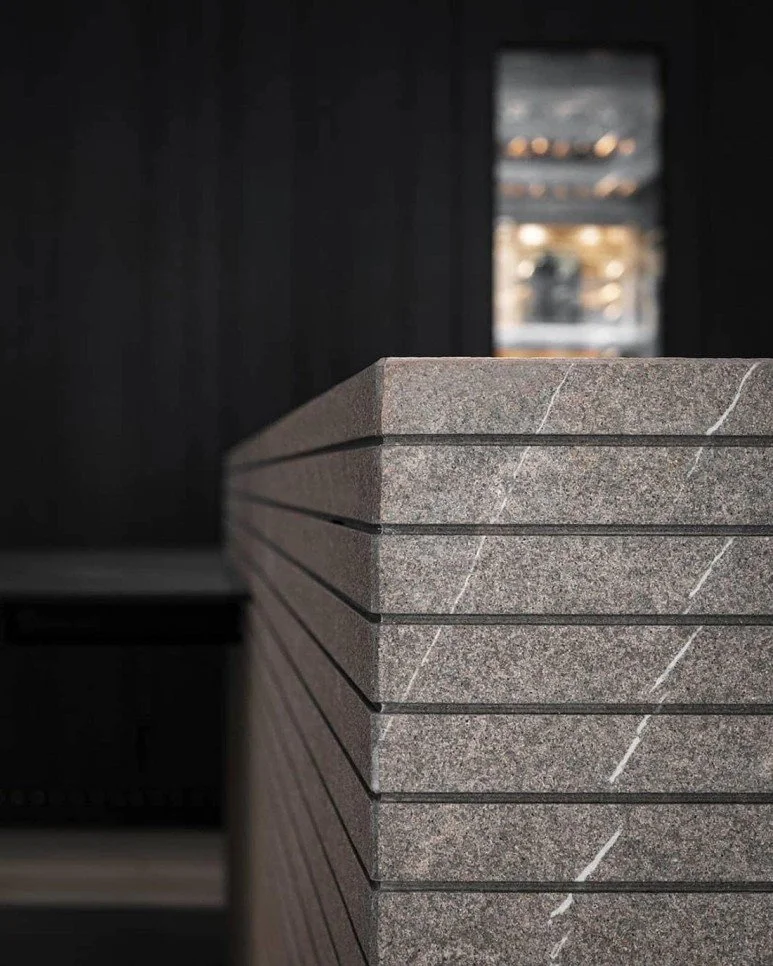 벽과 바닥은 가장 많은 실내 면적을 차지함으로써 공간의 기본이 되는 중요 요소입니다. 트라티는 독창적이면서도 세련된 패턴을 지녀 별도 가구, 오브제 없이 마감재만으로 개성을 부여하는 역할을 합니다. 석재 중간 중간을 잡아주는 인서트의 선형미가 공간의 디테일을 올려줍니다.