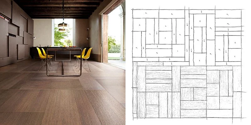 2개의 직사각형과 1개의 정사각형을 결합한 모듈형 원목 마루로 기하학적인 아름다움이 돋보입니다. 서로 다른 사각 형태가 빈틈없이 맞춰지며 모던한 조화를 이끌어내고 선과 면, 자연스러운 나뭇결의 컬러 및 텍스처가 미적 질서와 균형을 전합니다.