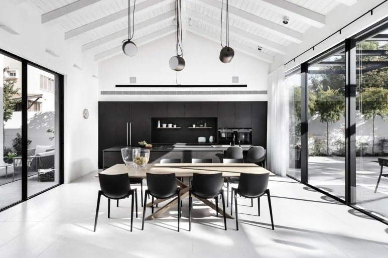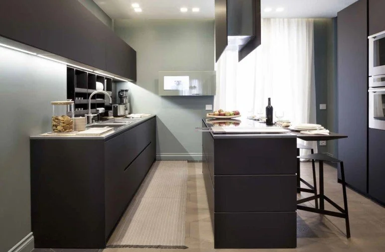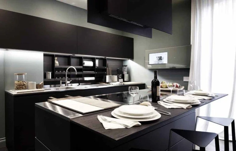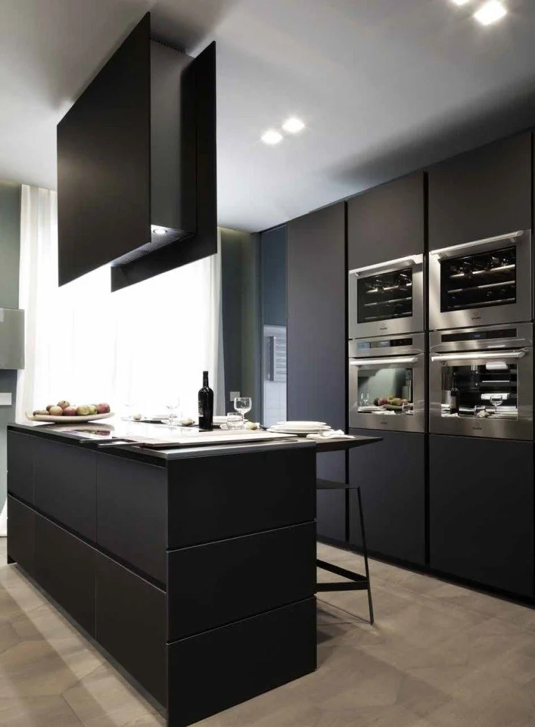 디자인을 최소화한 대신 시크한 블랙 톤으로 포인트를 주어 주방의 인상을 더욱 또렷하고 강인하게 각인시켰습니다.